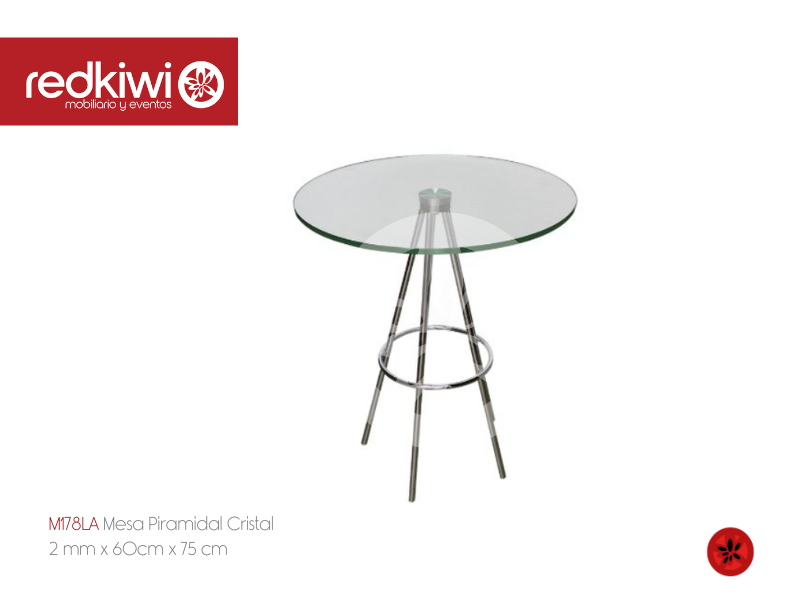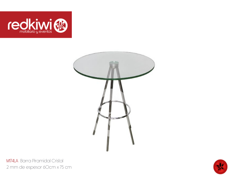 Base estructura metálica cromada con superficie en vidrio de 60cm de diámetro, Dimensiones: 2 mm de espesor 60cm diámetro x Altura 75 cm