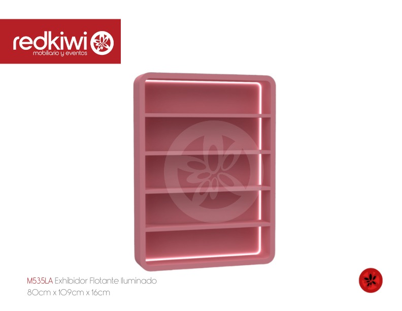 Base en madera y entrepaños en mdf pintados con laca catalizada color blanco e iluminación led luz blanca, 50cm de ancho x 200cm alto x 33cm de profundidad